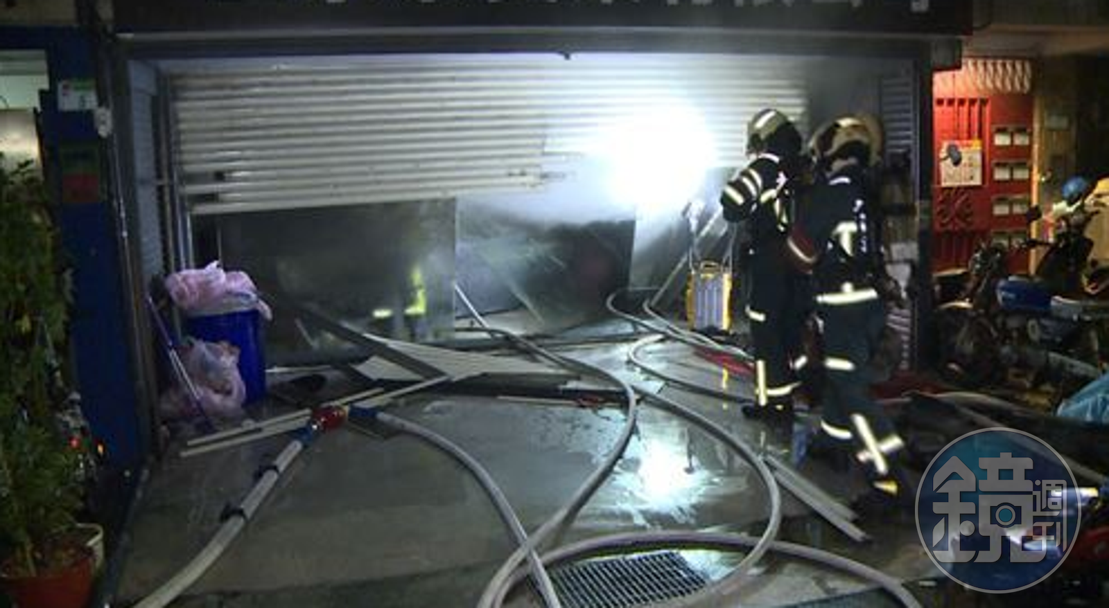 今日清晨4時左右北市中山區建國北路113巷內一店面,突然傳出巨大碰撞聲,附近居民驚醒後查看發現1台轎車多次倒車衝撞店家,店面的鐵捲門早已被撞到變形。 目擊民眾表示,現場約有數十名可疑人士聚眾,其中4人丟信號彈縱火,精品店隨即冒出濃煙,嚇得民眾趕緊報警,所幸火勢迅速被撲滅,未造成人員傷亡。 警方事後調閱附近監視器,同時鎖定可疑車輛,目前已掌握15名嫌犯追查,不排除是幫派糾紛所導致,已通知精品店負責人到場了解情況,確切肇事原因仍待進一步調查釐清。