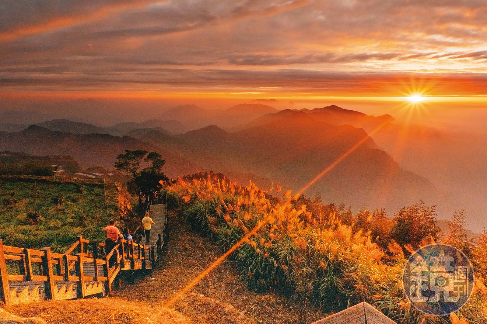 一到秋冬雲海季節,即使平日傍晚,觀景平台上也排滿攝影師們的腳架,更不用說附近民宿業者載來欣賞雲海的遊客,夕陽現身層層疊疊的山巒間,山嵐若隱若現,回首來時路,以感恩之心送走去年一整年的好與壞。