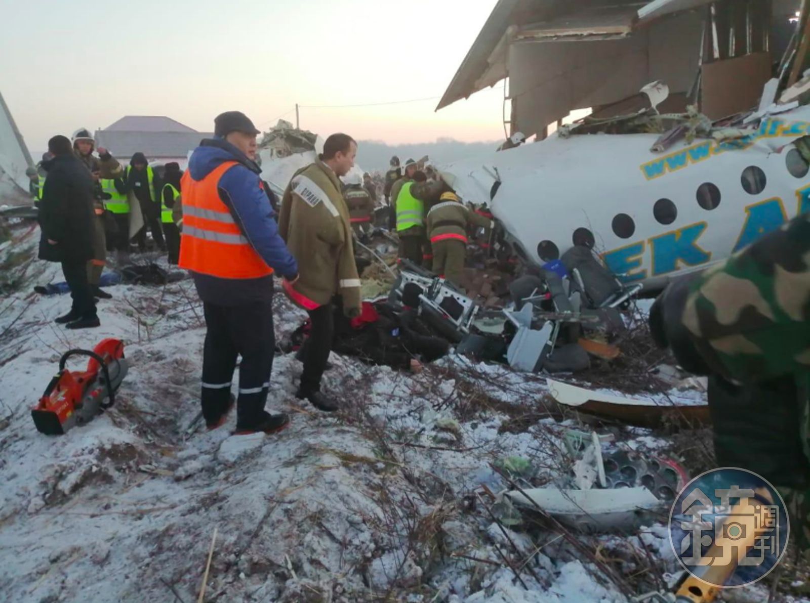 綜合外媒報導,這架編號2100班機原定當地時間7時5分從阿拉木圖飛往阿斯塔納,不過起飛不久後,7時22分就隨即消失在既定的雷達航線上,接著就高速撞進2層樓的民宅內,目前警消與當地人員皆協助搶救,現場無明顯起火。 該架班機上有95名乘客和5名機組人員,當地民航局指出,空難中死亡人數增至9人,其餘傷亡人數仍待確認。阿拉木圖機場表示,墜機後仍有倖存者,搜救人員已經趕赴現場搶救。 一名網友也在社群媒體上發布一段關於墜機後的影片,從影片可看出有兩輛車前往協助墜毀飛機,將機上可能生還者疏散。