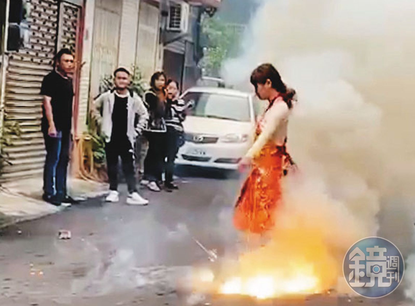正妹乩童因三太子降駕附身,就算站在鞭炮中也能毫髮無傷。(翻攝臉書)發布時間:2020.01.01 05:58 臺北時間