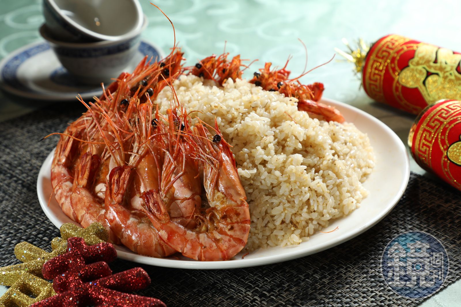 老闆謝浡勳一人掌勺,卻不見一絲急促,完全看不出來早期手藝曾被客人打槍。我跟著他進廚房,一探點播率最高的「獨家飛魚卵茶蝦飯」製程,謝浡勳拿出啤酒杯,倒入八分滿純苦茶油,入鍋燒出煙氣,丟進草蝦油煸,接著撈起蝦子、扣進飛魚卵與米飯,用鍋鏟切飯、鬆飯,再以腕力舉起鍋子翻炒。