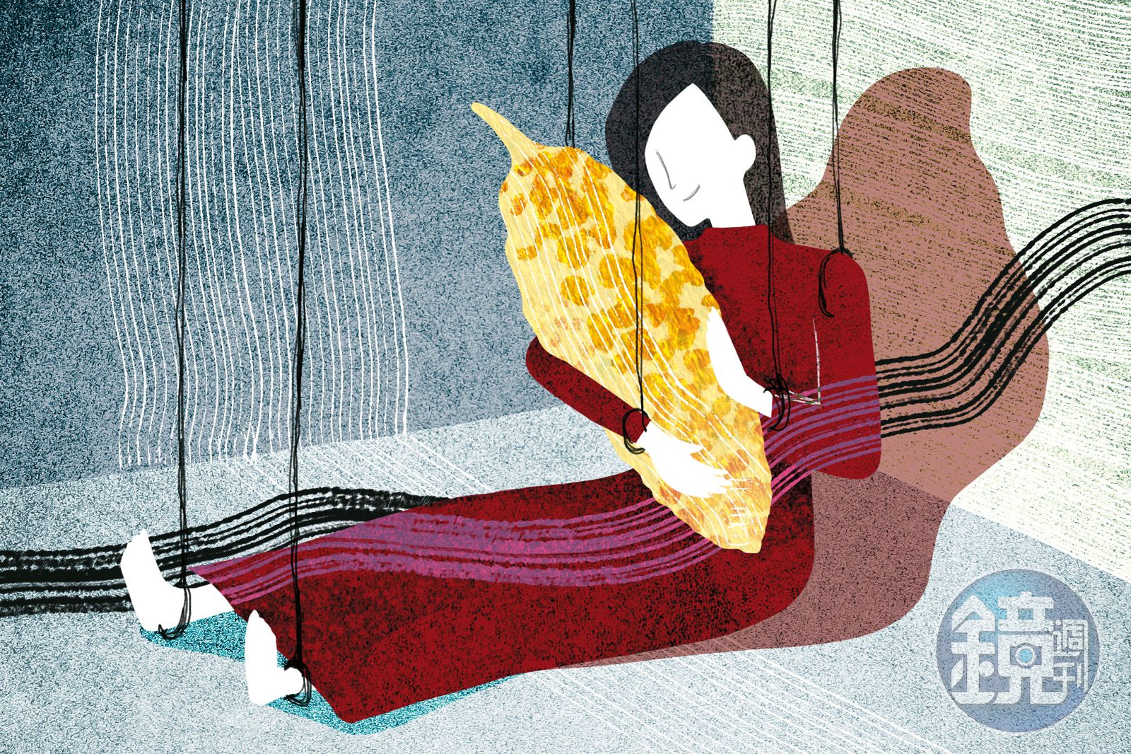 老公分秒必爭,凡事求快,每晚七點,準時出現在新聞台的播報台。他從不遲到,時間精準切割,不允許任何拖延。只剩五分鐘就要出門,那天的喜宴,老公受邀上台致詞,絕不能晚到。老公善用那短短五分鐘,拿剪刀把她的露背洋裝剪爛,拳頭撞上她的身體,絕不打臉也不抓髮,從衣櫃抓了一件紅色長袖套裝逼她換上。五分鐘,剪衣、揍人、穿衣,分秒不拖延,她沒哭沒喊,套裝穩穩穿好,髮型沒亂,妝完美精緻,五分鐘後,他們準時出門。老公是操偶師,她是懸絲偶,乖乖任他擺布,安靜地度過這五分鐘。是偶,所以手不是她的,腿不是她的,整個身體都屬於老公,微笑表情是畫上去的,肢體被暴力扯動,表情依然微笑永恆。