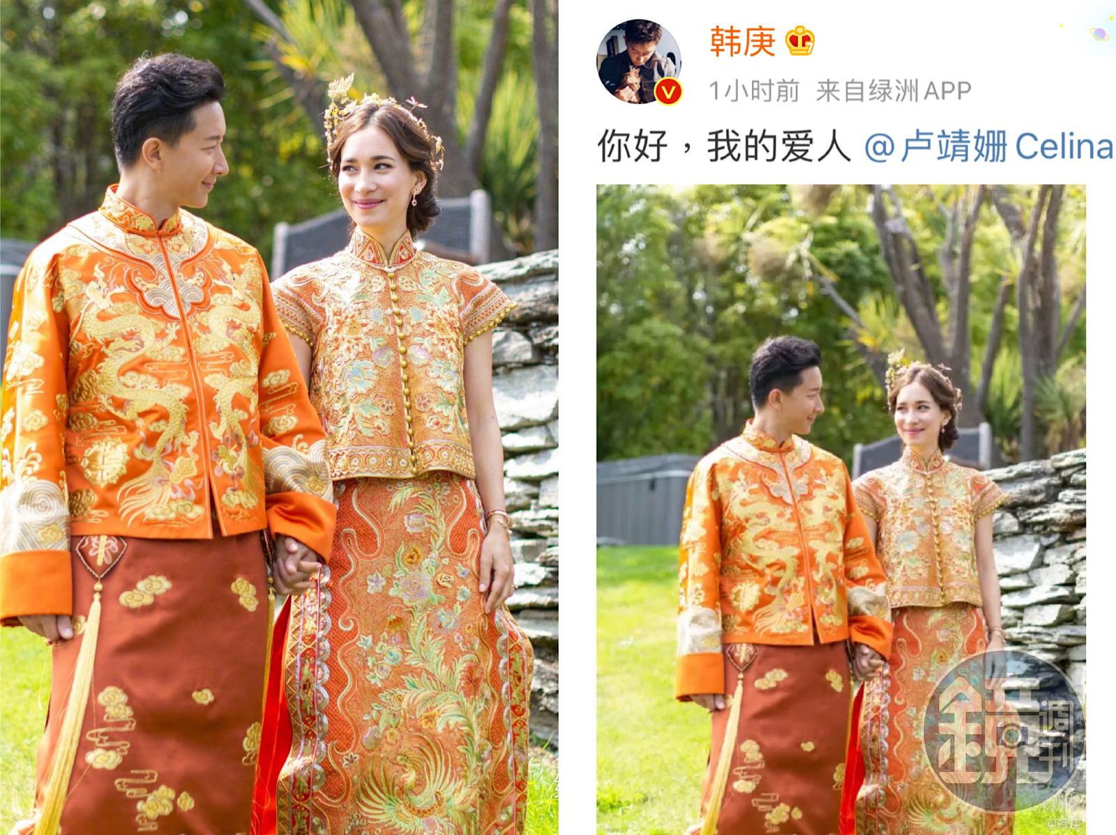 大陸男星韓庚和混血女星盧靖姍31日在紐西蘭舉行婚禮,昨(30)日晚間先進行歡迎晚宴,宴會上兩人燦笑和親友互動,甜蜜全寫在臉上。自從韓庚和盧靖姍公開情侶關係後,屢屢傳出兩人登記結婚的消息,不過雙方都不被雙方證實,直到最近女方友人爆料兩人會在今日於紐西蘭完成終身大事。果然兩人先在昨晚舉辦婚宴,今早舉行婚禮,為2019年的華人娛樂圈做了一個甜蜜的Ending 。