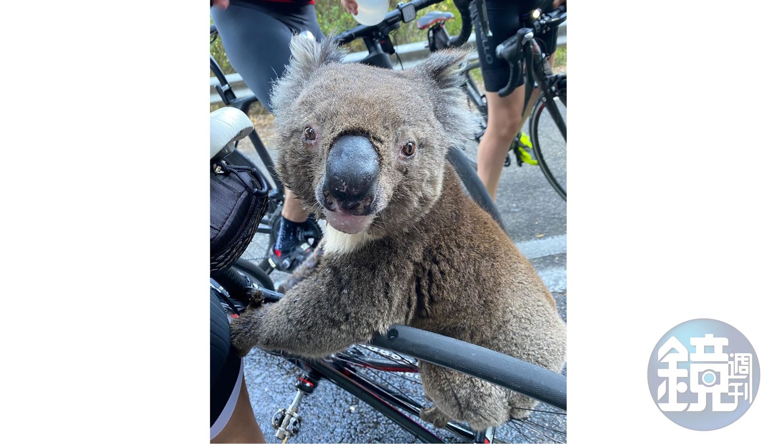 日前,一群公路自行車騎士馳騁於南澳洲的阿得雷德,竟遇到一隻灰溜溜的野生無尾熊出現在馬路中央,看到人不僅未閃避,還直直向他們走來,久逢甘霖似地喝空其中一位騎士的水瓶。