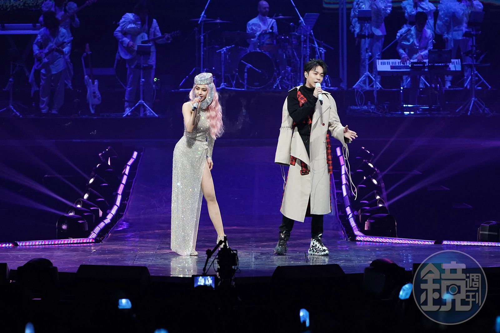 蔡依林昨天喊話要送歌迷「新年禮物」,便以一襲水鑽貼身禮服介紹青峰出場,兩人合唱〈倒帶〉時默契十足,讓蔡依林忍不住對青峰告白「每次看你唱歌都想要親下去。」讓青峰吐槽「不要只是說說而已」,隨後Jolin假裝要撲上去親,卻嚇得青峰往後退,笑翻台下觀眾。