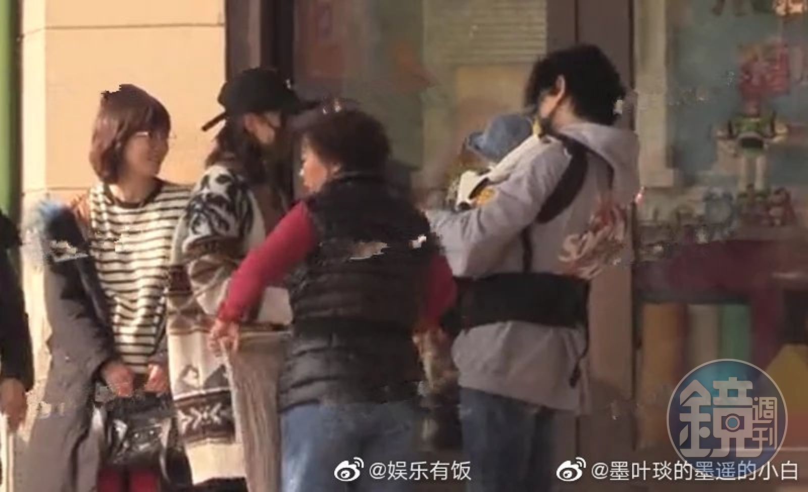 一路上幾乎都由保母或吳奇隆抱小孩,吳奇隆更套上嬰兒背帶,十足奶爸樣。(翻攝自微博)發布時間:2020.01.02 13:33 臺北時間