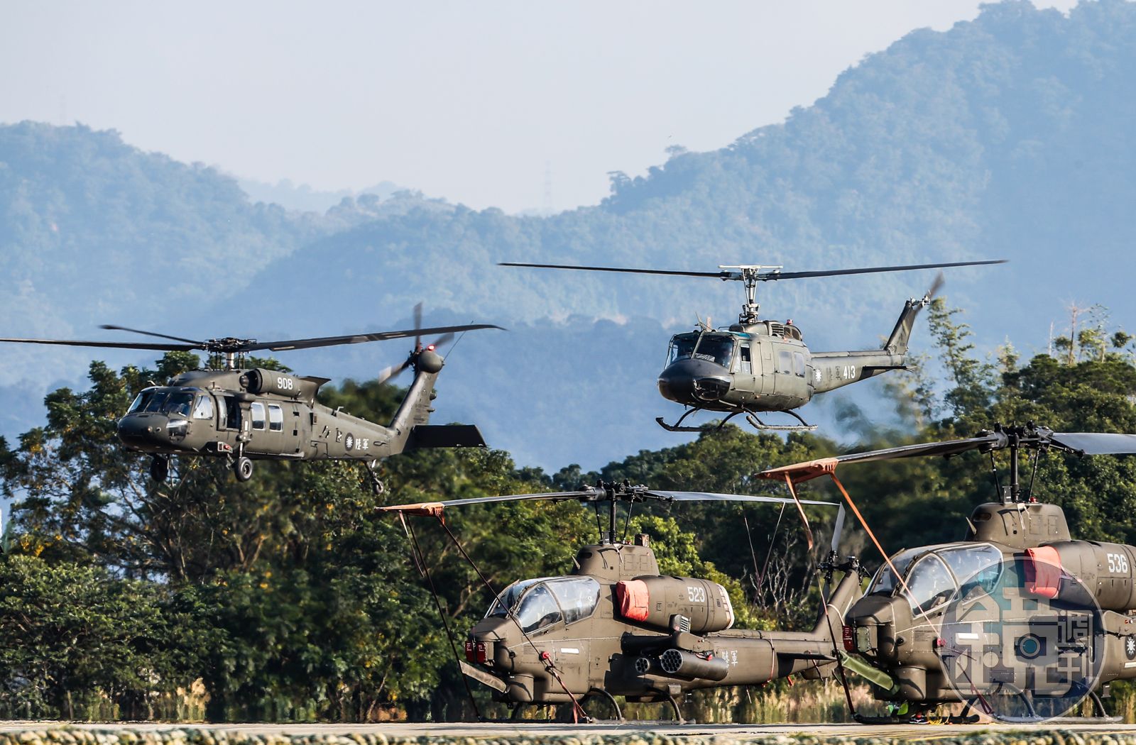 圖為UH-1H與UH-60M黑鷹直升機任務正式接替畫面。(軍聞社記者卓以立攝)發布時間:2020.01.02 22:14 臺北時間