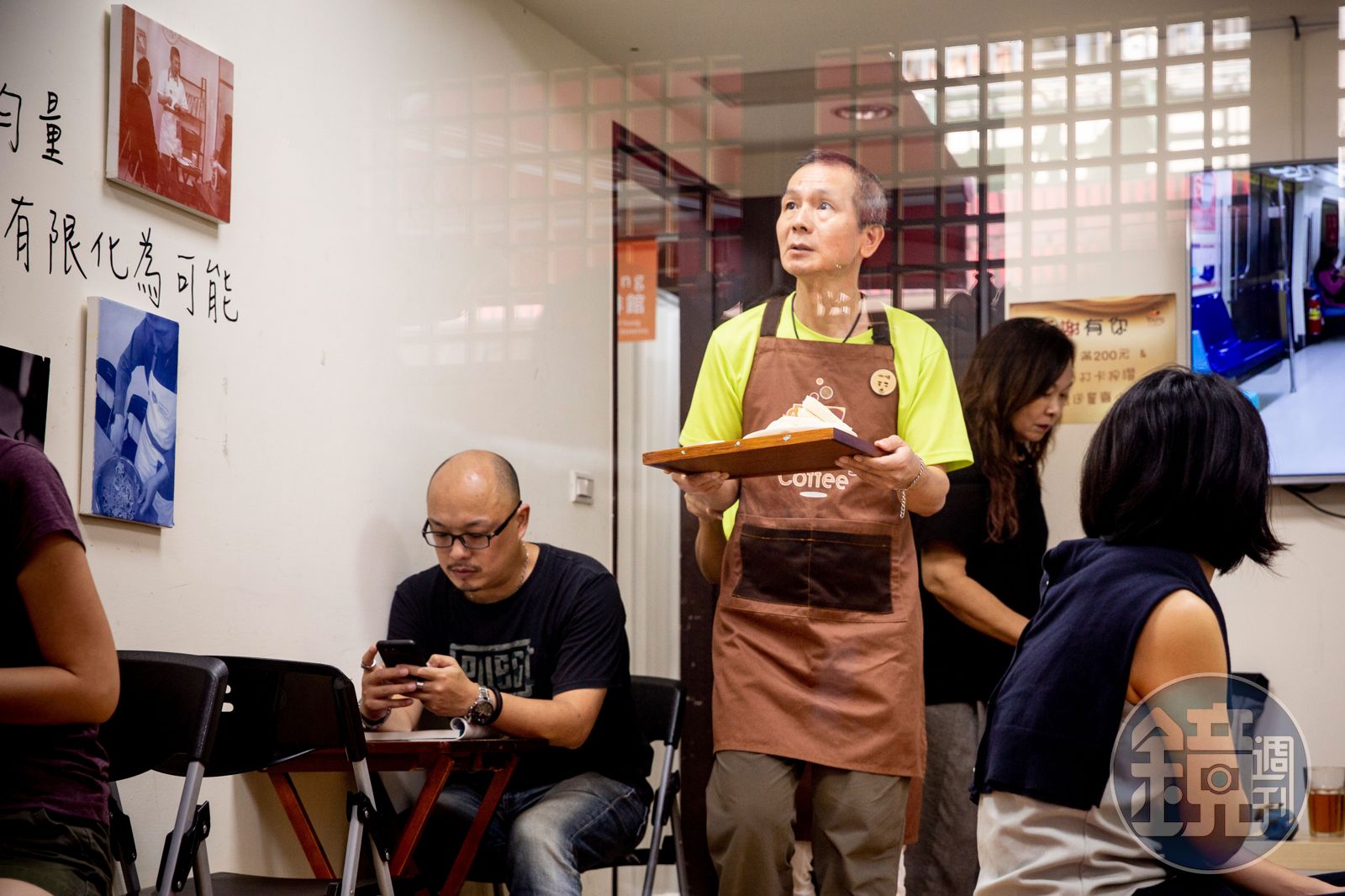 確實,失智症患者的行動和記憶力都有障礙,做餐即便有標準作業流程,也需要協會人員從旁引導,1杯100元的咖啡,可能需要3個人共同完成。對協會來說,這是一樁不可能賺錢的生意;對員工來說,因為忙中易錯,家屬偶爾也要撩下去一起做,一份工作2人擔,時薪40元,說是倒貼都不為過。