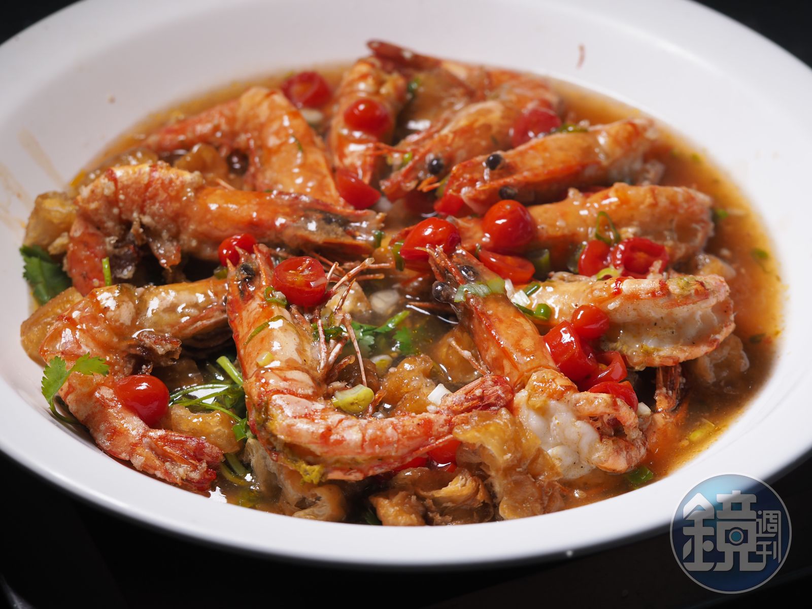最厲害的當然還是遠近馳名的撒嬌雞,這道由阿燦師與父親40年前一起研發的菜式,雖然貌不驚人,入口卻叫人驚艷,約莫3斤重的仿土雞加肉桂、甘草粉、高粱酒,包起來蒸煮,筷子一撥,簡簡單單便骨肉分離,酒香與辛香交織,令我回味到如今。隨全雞之後登場的紅燒大蝦,酸甜調味幫味蕾預備了過場轉折的空檔,迎接下面的功夫菜。