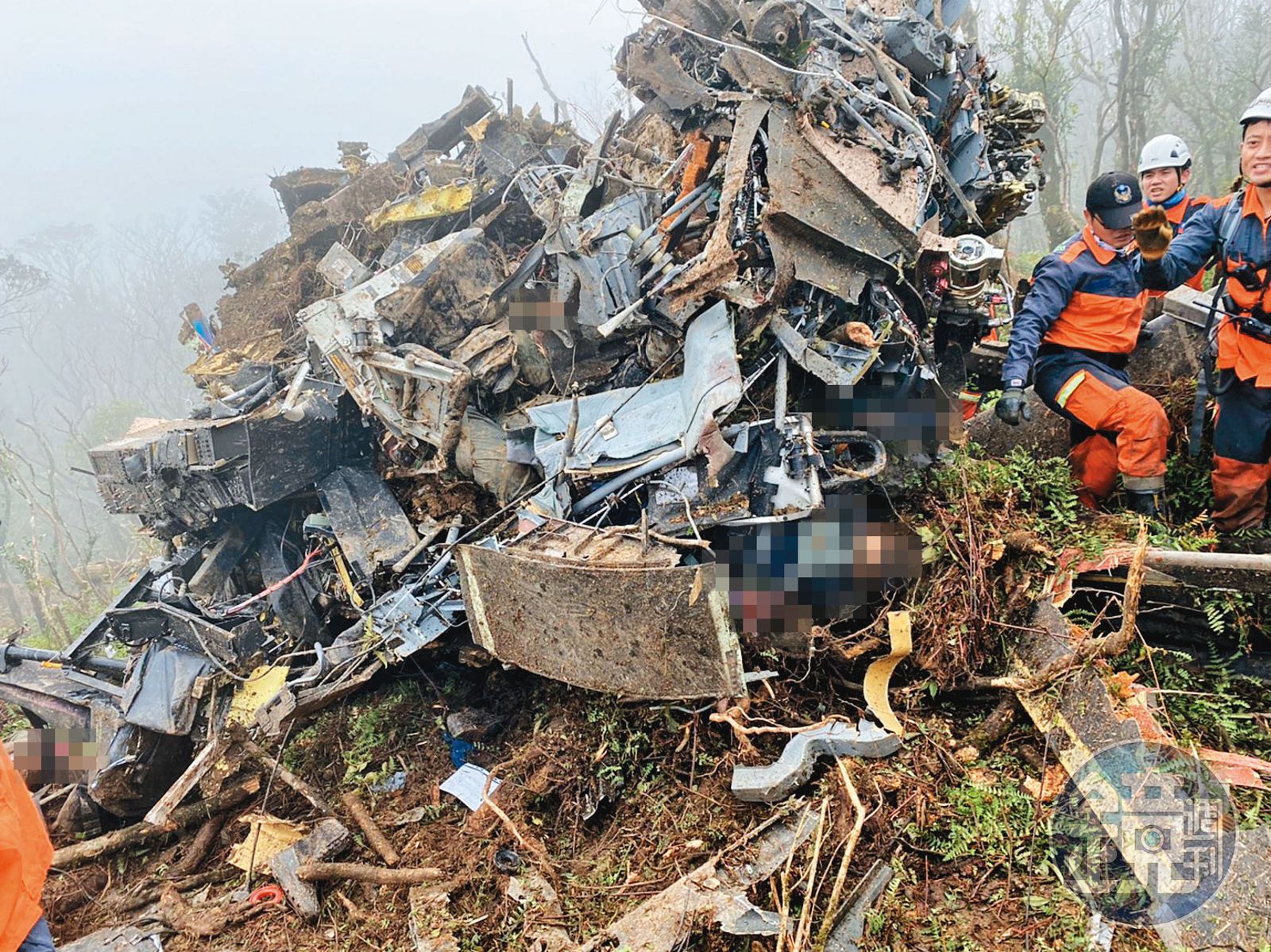 隨後搜救人員陸續找到困在黑鷹中的7具罹難者遺體,其中參謀總長沈一鳴等4人,目視便能得知其大體在殘骸中的位置,另外3名死者則困在殘骸裡,只能破壞機艙,將大體搬運出來。