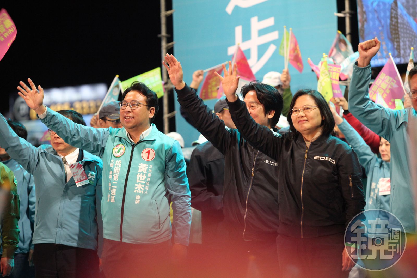 蔡英文也為桃園民進黨楊梅選區立委候選人黃世杰拉票,強調他是總統的學弟、市長的徒弟,拜託大家把他送進立法院。她呼籲支持者一定要催票、投票,投票意願要比對手更大。