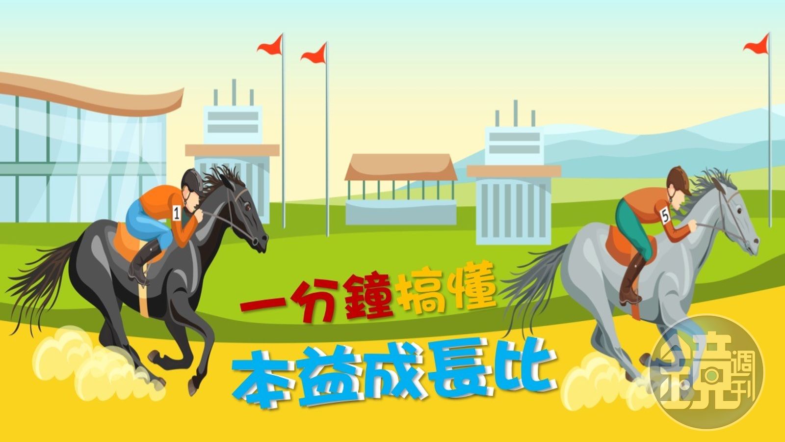 以A、B兩家公司為例,A公司的本益比為20倍,未來淨利成長率為8%,其本益成長比是2.5倍(20/8);B公司本益比為12倍,未來淨利成長率為20%,其本益成長比為0.6倍(12/20)。