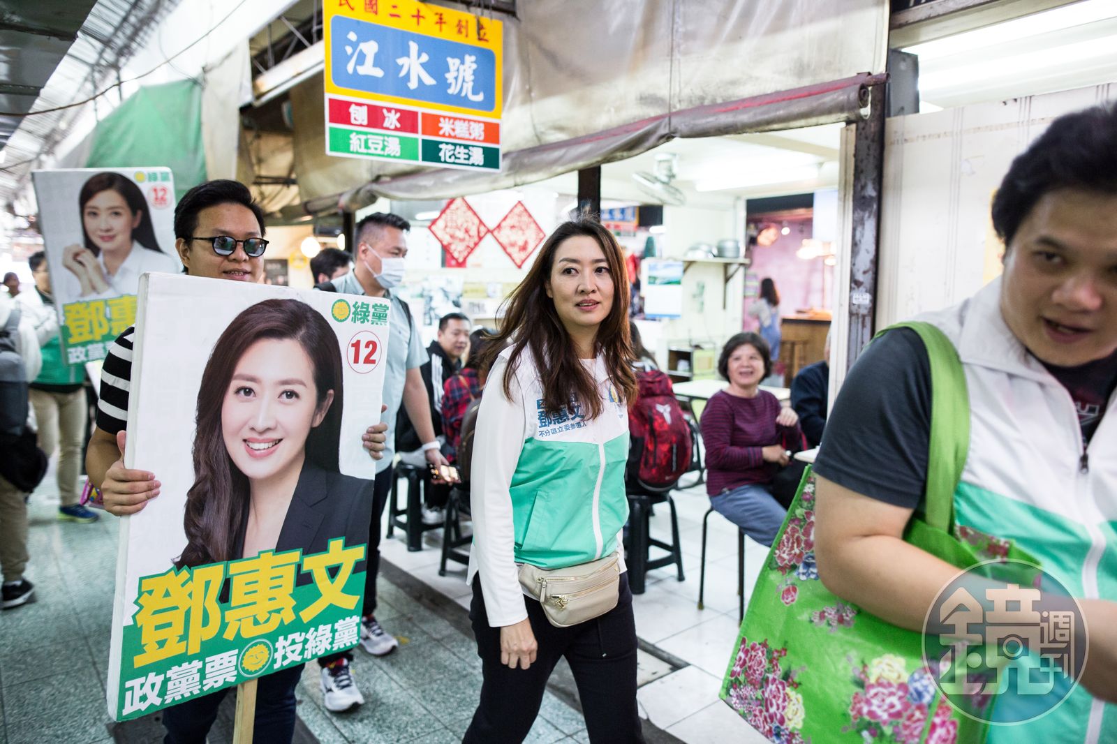 本刊記者於選前一週,隨鄧惠文及綠黨在台北、台中和台南掃街拜票,觀察鄧與選民互動情形。就像舉辦粉絲見面會,許多路人一見鄧惠文便驚喜雀躍,排隊等候合影。如此盛況,在綠黨的參選歷史上前所未見,黨工們對選情抱樂觀態度,不料結果不如預期,許多年輕黨工都忍不住哭了。