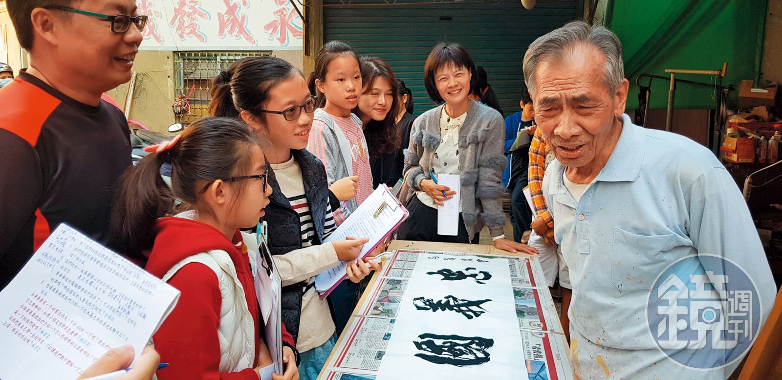 一塊匾額須歷經決定文字、題匾、選木、放樣、雕刻、打磨修飾、上漆、安金箔、打蠟等程序才得以完成,但也因為過程繁複,現在願意學習的人越來越少。老匠師精通各項工序,只要有人願意學,就不吝惜傳承技藝,然而隨著科技進步,省時又低成本的機械製匾成為流行,為了傳承兼具書法、雕刻等工藝之美的製匾技藝,他特別撥出時間,接受忠義國小9位同學的訪問。