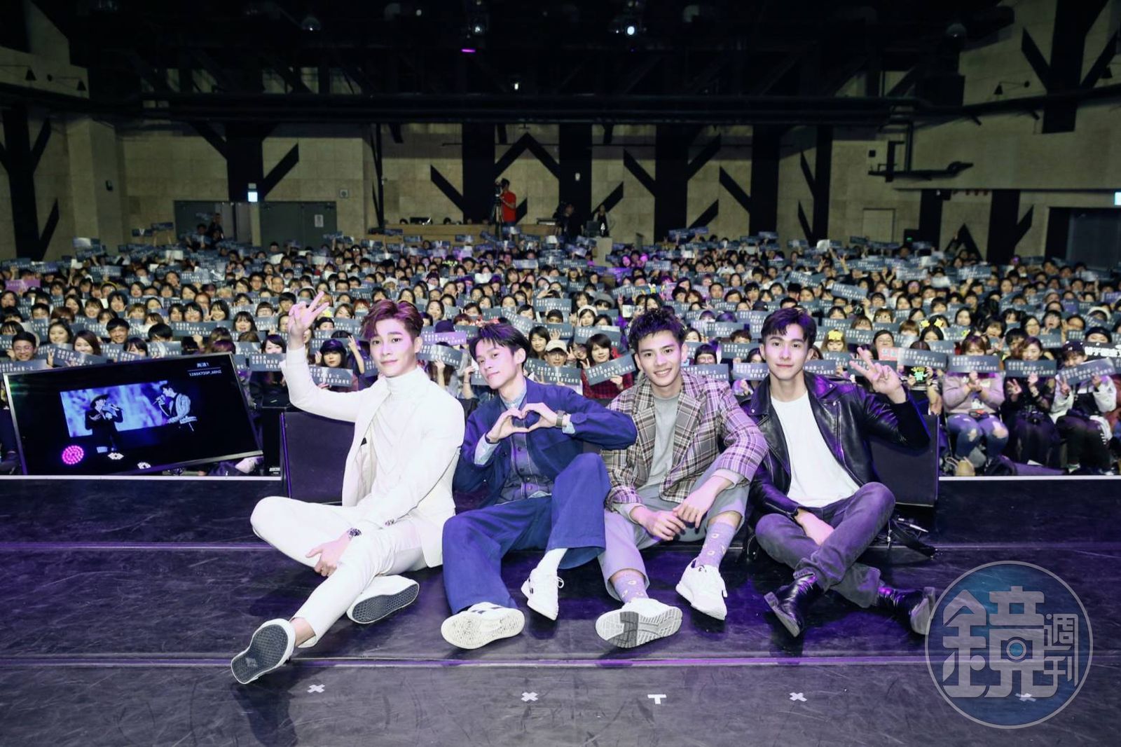 明杰化身演技指導,但要四人攻守交換,重現劇中經典畫面,高大的宋偉恩站大八等待黃雋智熱情攻勢,最後竟甜蜜送飛吻樂得台下粉絲尖叫聲不絕於耳。活動終場,四人一起悄悄從後台合唱五月天的「戀愛ING」驚喜出場,邊唱邊發送甜蜜蜜麻糬(鼠年),象徵要與粉絲黏一起,撒糖不間斷,讓大家驚喜大叫,現場宛如大型同樂會。