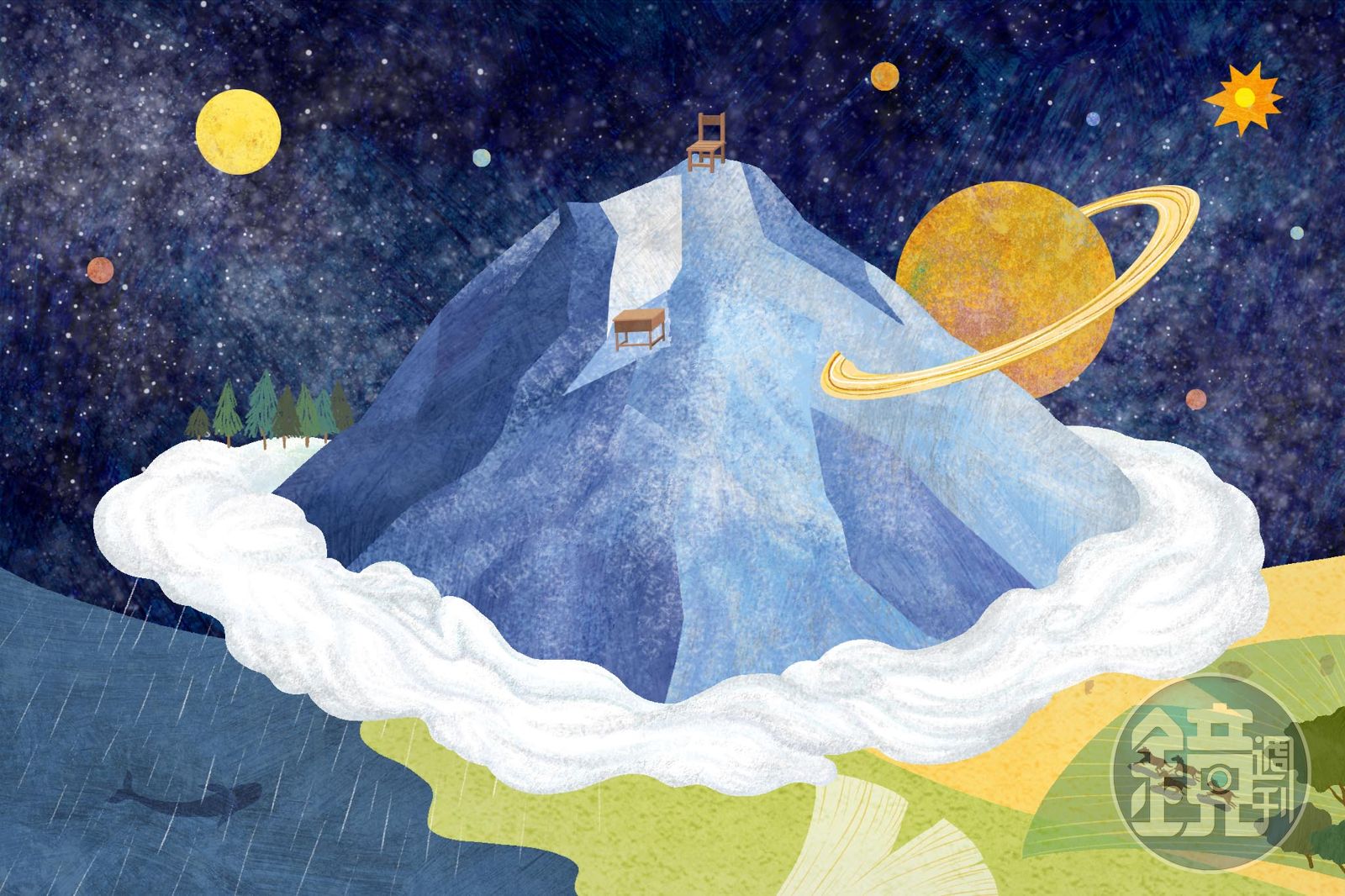 有一個課桌椅在埃佛勒斯峰山頂