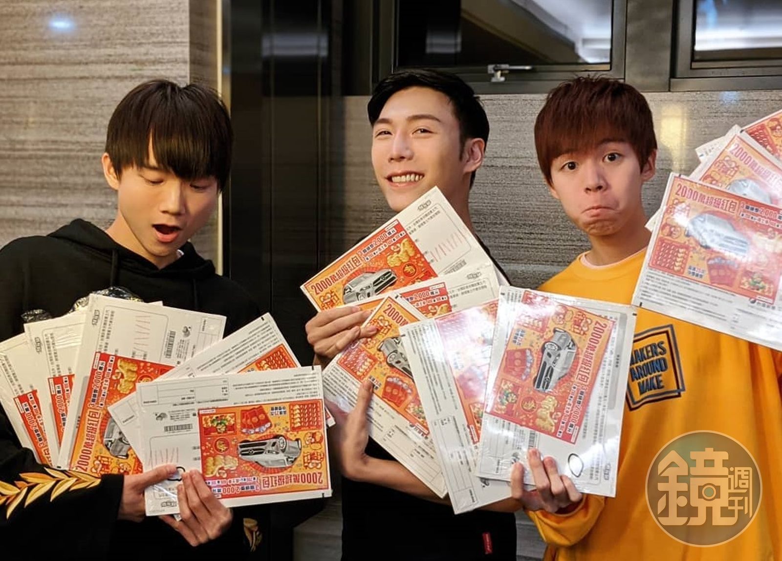 「黃氏兄弟」花50萬4,000元買了14本2,000元的刮刮樂,還邀請網紅「見習網美小吳」(中)一起開刮。(翻攝自黃氏兄弟IG)發布時間:2020.01.16 13:20 臺北時間