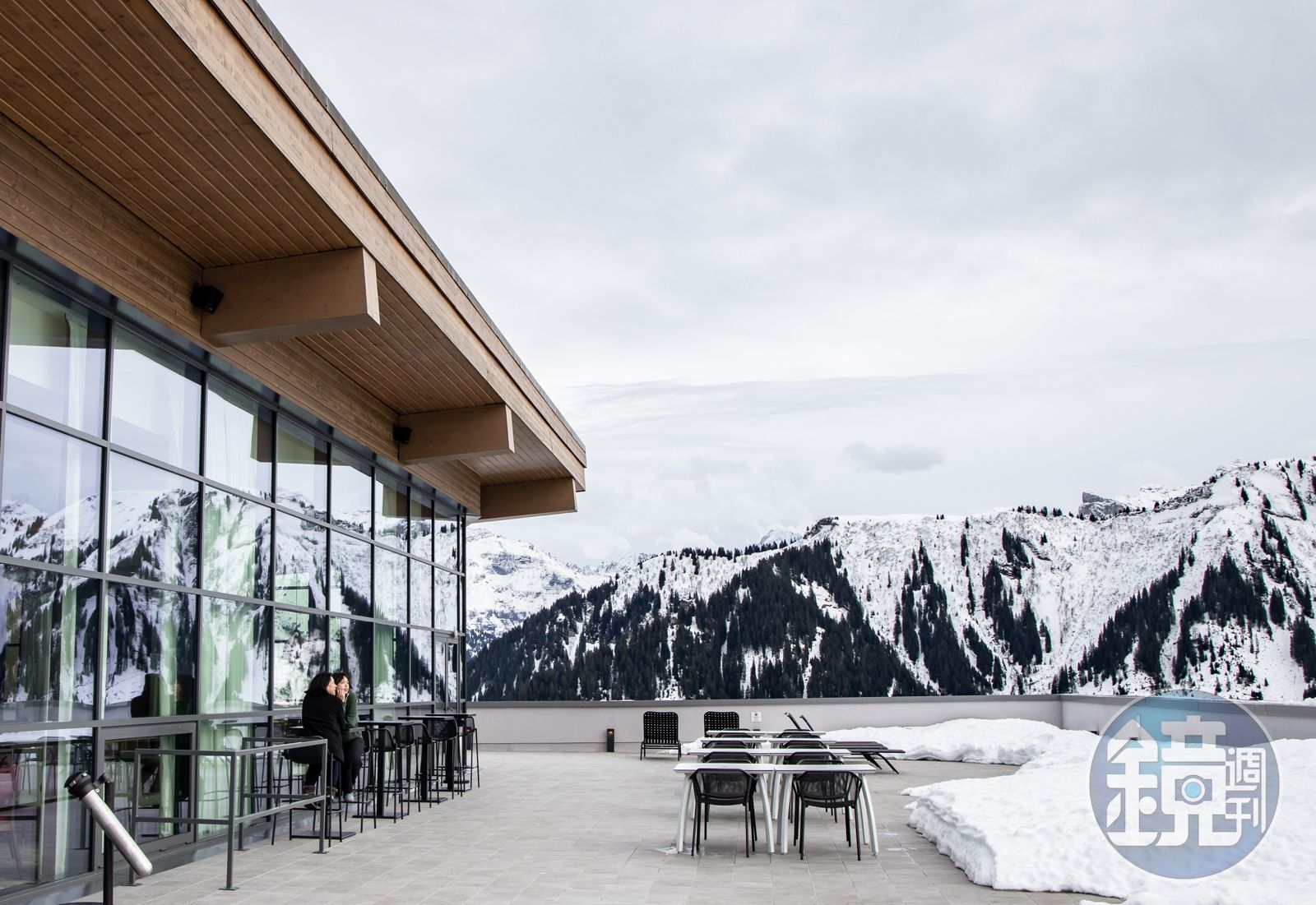 「Club Med Grand Massif Samoëns法國薩莫安斯」中有兩家餐廳,位在頂樓的主題餐廳「Skyline」,是村長Thomas Rodriguez最喜歡的角落,餐廳最大賣點是幾近360度的全景視野,可見到連綿不絕的阿爾卑斯山脈雪白山頭、來回往返的纜車和熱鬧滑雪場,天氣好時坐在戶外更能感受景色之壯闊。用餐前在酒吧喝杯調酒,以美好音樂與優雅法式情懷暖場,餐廳以單點菜色為主,一道道佳餚配美酒,客人酒酣耳熱、聊得忘我。