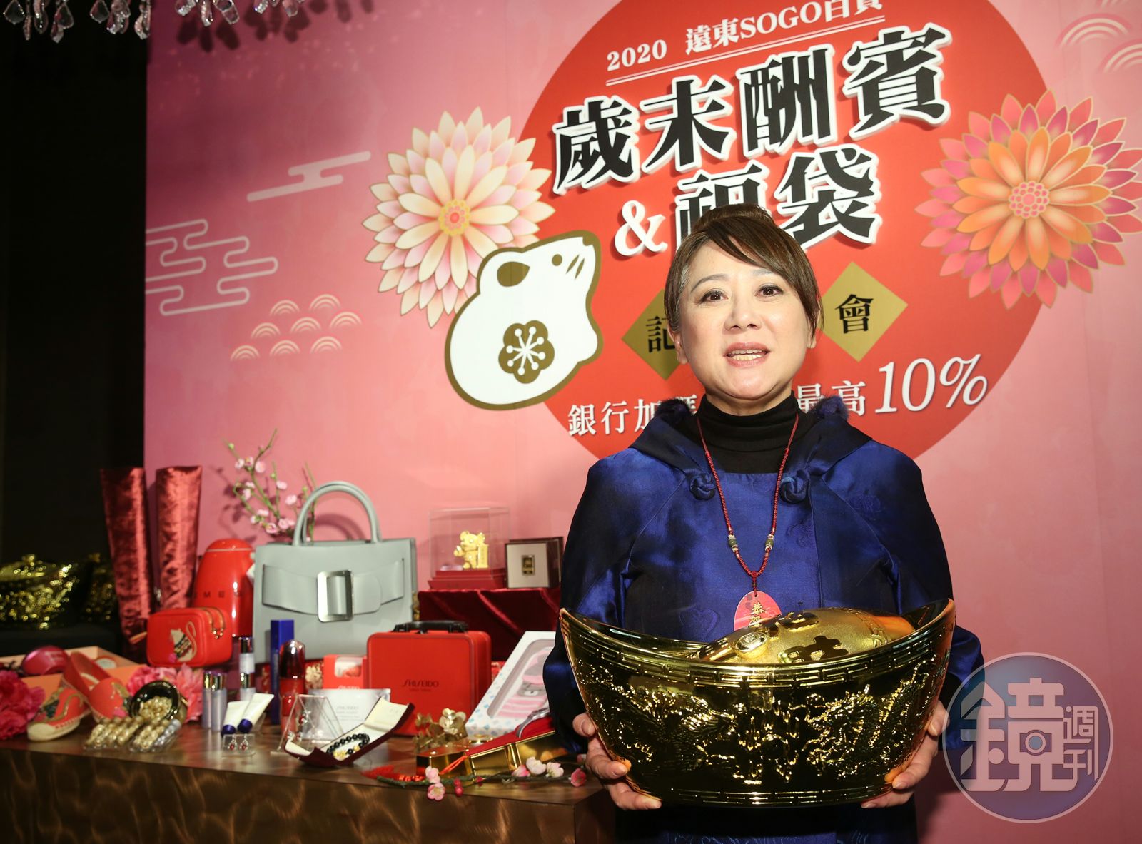 遠東SOGO董事長黃晴雯今(17日)出席記者會,只見她穿著一身喜氣,跟大家分享新春福袋好禮資訊,同時也公布公司營運好消息!