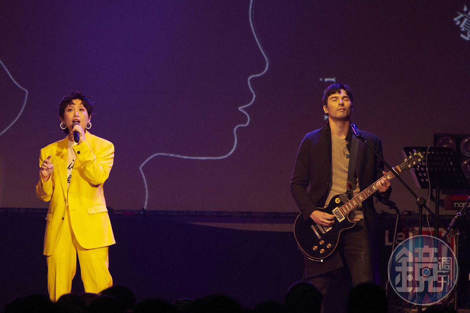 魏如萱穿著一襲鵝黃色西裝登場,並請到鳳小岳擔任嘉賓。(好多音樂提供)發布時間:2020.01.19 18:32 臺北時間