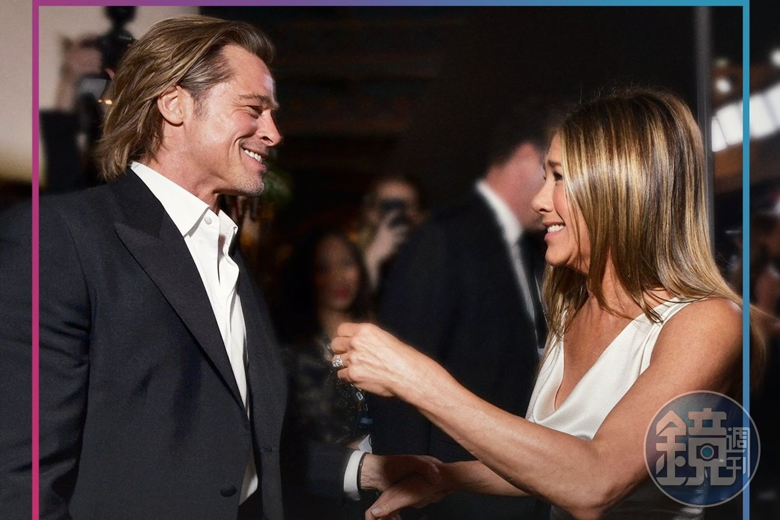而珍妮佛安妮斯頓隨即也憑Apple TV劇集《晨間直播秀》贏得劇情類影集的最佳女主角,當時「小布」還在後台關切地看著電視,得知珍妮佛得獎,馬上展現歡快的笑容。兩人隨後也在後台相見歡,開心地向對方道喜,兩人更被捕捉到珍妮佛的手剛好壓在小布胸前,而小布的手也握著前妻的手的畫面。