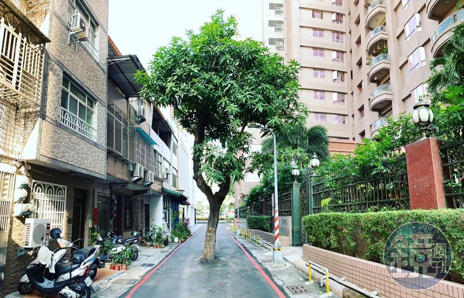 昨(20日)臉書粉絲專頁「高雄點 Kaohsiung.」貼出一張巷弄馬路正中央,矗立著一顆芒果樹的照片,從寬度上看來,僅能容得下摩托車通行,仔細一看,樹幹上還貼著反光條提醒用路人避免碰撞。