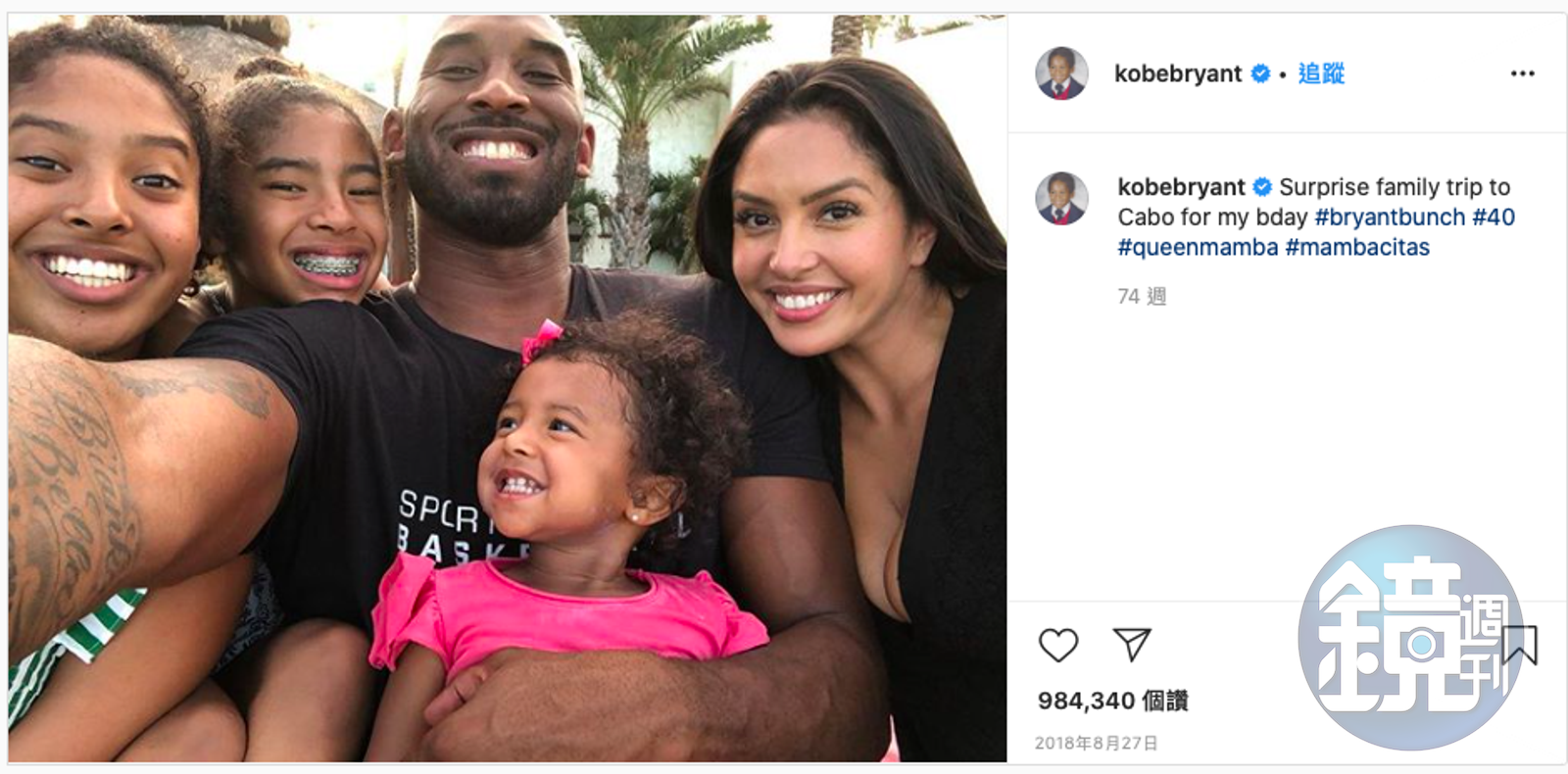 柯比曾在接受訪問時,認為二女兒吉安娜的籃球天分最好,最有可能繼承他的衣缽。在墜機的新聞發生後,大女兒納塔利亞因過度驚慌引發氣喘送醫急救。而妻子凡妮莎的Instagram帳戶也暫時設為「私人」不公開。