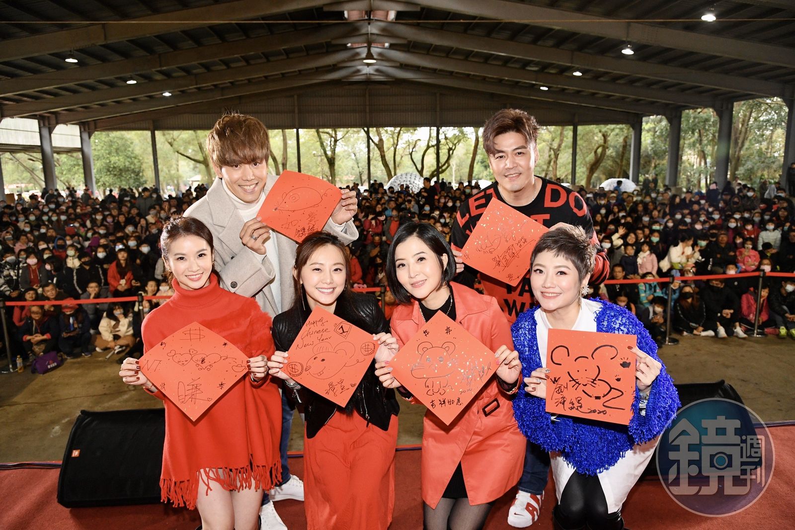 在《炮仔聲》新春見面會活動中4位女生陳小菁、劉沛緹、李亮瑾、璟宣難得開金嗓,現場又唱又跳把氣氛抬到最高點,劉至翰與余秉諺則當綠葉在旁邊伴舞,除此之外眾演員們還比手畫腳大猜鼠年吉祥話,在有限的時間內每人搞笑不斷。