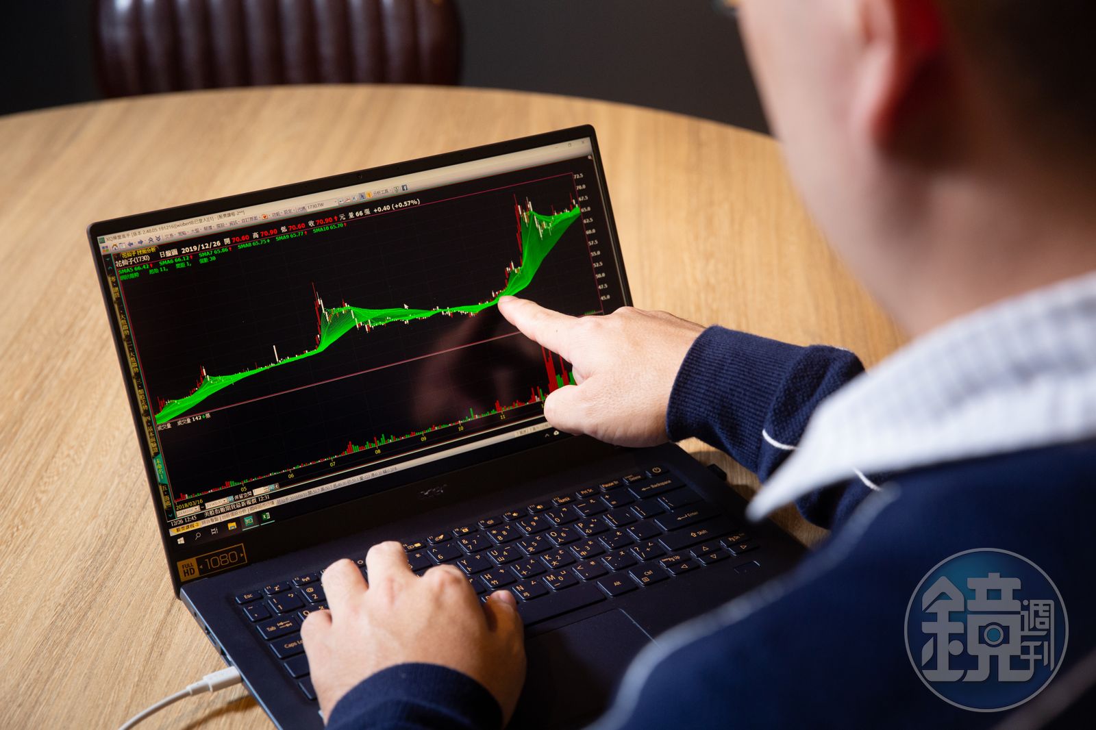 林昇每天利用「極光線」來判斷大盤多空,當大盤站上「極光線」的密集區時,就開始找股票做多,「其中效果最好的情況是,大盤與多檔個股一起站上極光線的密集區,形成共振情況,此時往往有一段行情。」