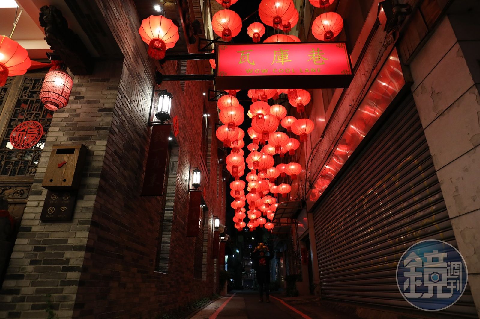 建築外觀以成都寬窄巷子青磚建築為主,店主陳冠儒說,在大陸時看見將拆除老屋,屋前的老門雕刻極美,測量後發現竟剛好符合店門長寬,於是特地運回台灣,更在屋旁小巷掛上紅色燈籠,打造出充滿年節風味,又適合拍照的「瓦庫巷」。屋子從入口處開始,便有了靈魂。