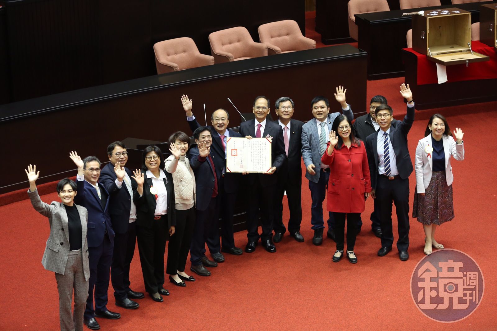 得票結果揭曉後,民進黨立委簇擁游錫堃在議場內鼓掌歡呼,並由會議主席柯建銘代表授與游立法院長當選證書。