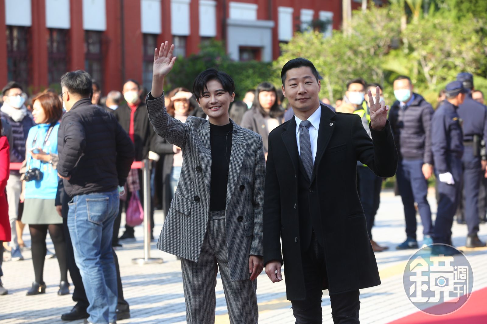 賴品妤一身灰色細格紋西裝,搭配黑色高領上衣,被形容成「好帥」。另外,她今天還與國會頭髮最長的無黨籍立委林昶佐一同登場,倆人過去曾是「師徒」關係,賴為林昶佐的國會助理,如今則是一起當選,攜手走上紅毯。