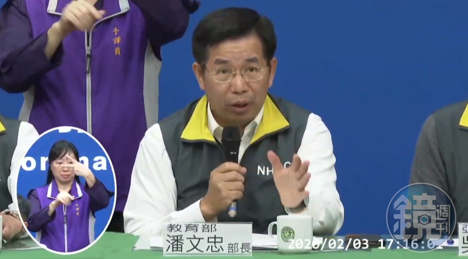 教育部潘文忠部長宣布,大專院校第二學期延至2月25日以後開學,陸生2月9日後仍暫緩來台。(翻攝自衛生福利部疾病管制署YouTube頻道)發布時間:2020.02.03 18:01 臺北時間