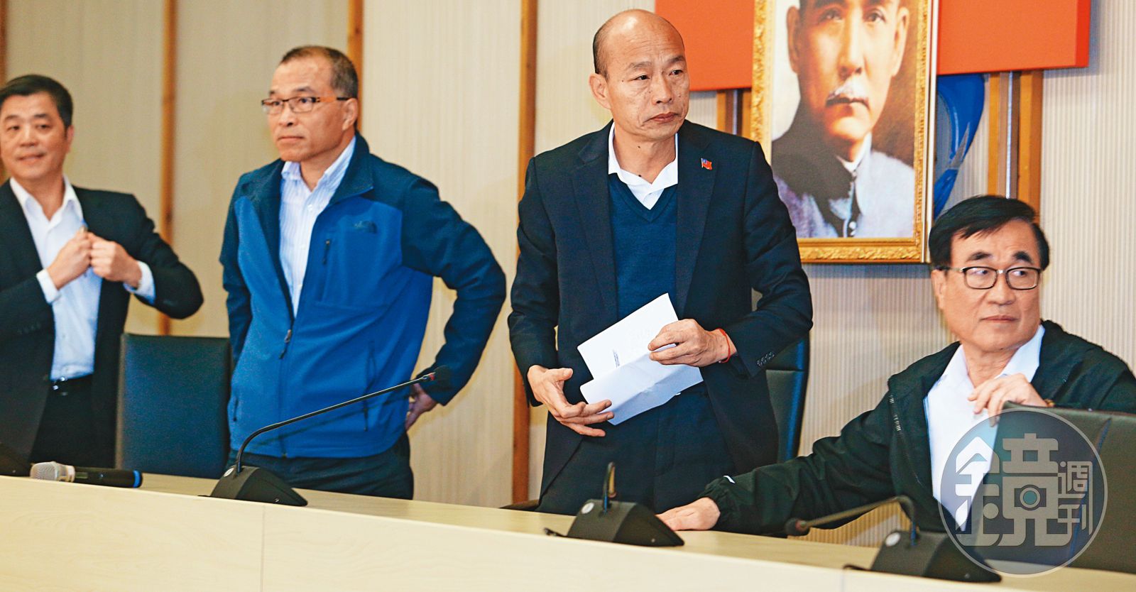 大選失利後,韓國瑜(右2)重回市長角色,首場市政會議就下令拚有感施政,企圖為罷韓止血。(聯合知識庫)發布時間:2020.02.04 06:28 臺北時間