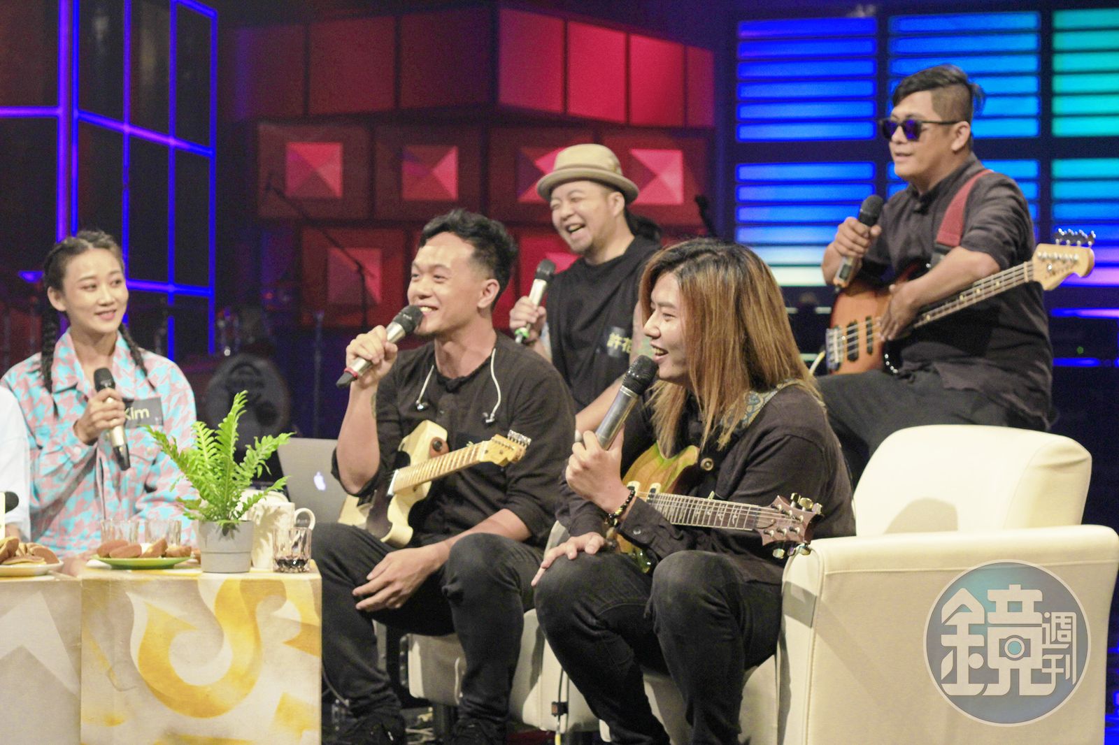 聊到團員們的紓壓方式,電音女團「妮可醬」主唱小斯表示很喜歡做瑜珈,尤其最喜歡倒立的動作;合成器手Kim分享自己的紓壓方式竟然是「摔人」,原來在她亮麗的外表下,暗藏合氣道黑帶的身分,還在攝影棚現場大顯身手,當眾將「晨曦光廊」鼓手許花摔在地上,讓眾人相當佩服!