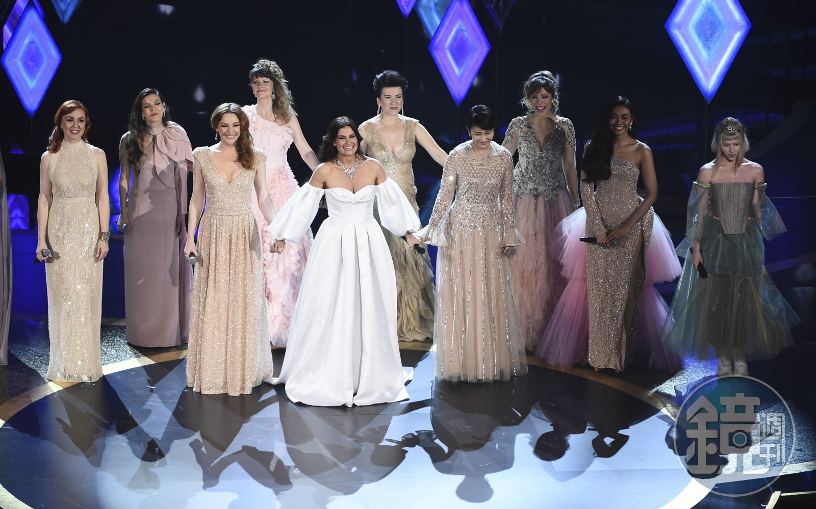 話說《冰雪奇緣2》英文版演唱人伊迪娜曼佐(左5),連同歐若拉(Aurora,右1)與全球各地的主題曲演唱人,都請來奧斯卡一起完成接力演唱〈Into the Unknown〉,其中大家比較熟悉的是日語版的松隆子(右4)。如果你好奇為何請松隆子,而不是別人,因為《冰雪奇緣》在日本的票房成績,居然超越了在北美的票房,這點讓迪士尼都至今想不透,所以「冰雪奇緣」園區也宣佈蓋在東京迪士尼樂園,而非美國的迪士尼樂園。