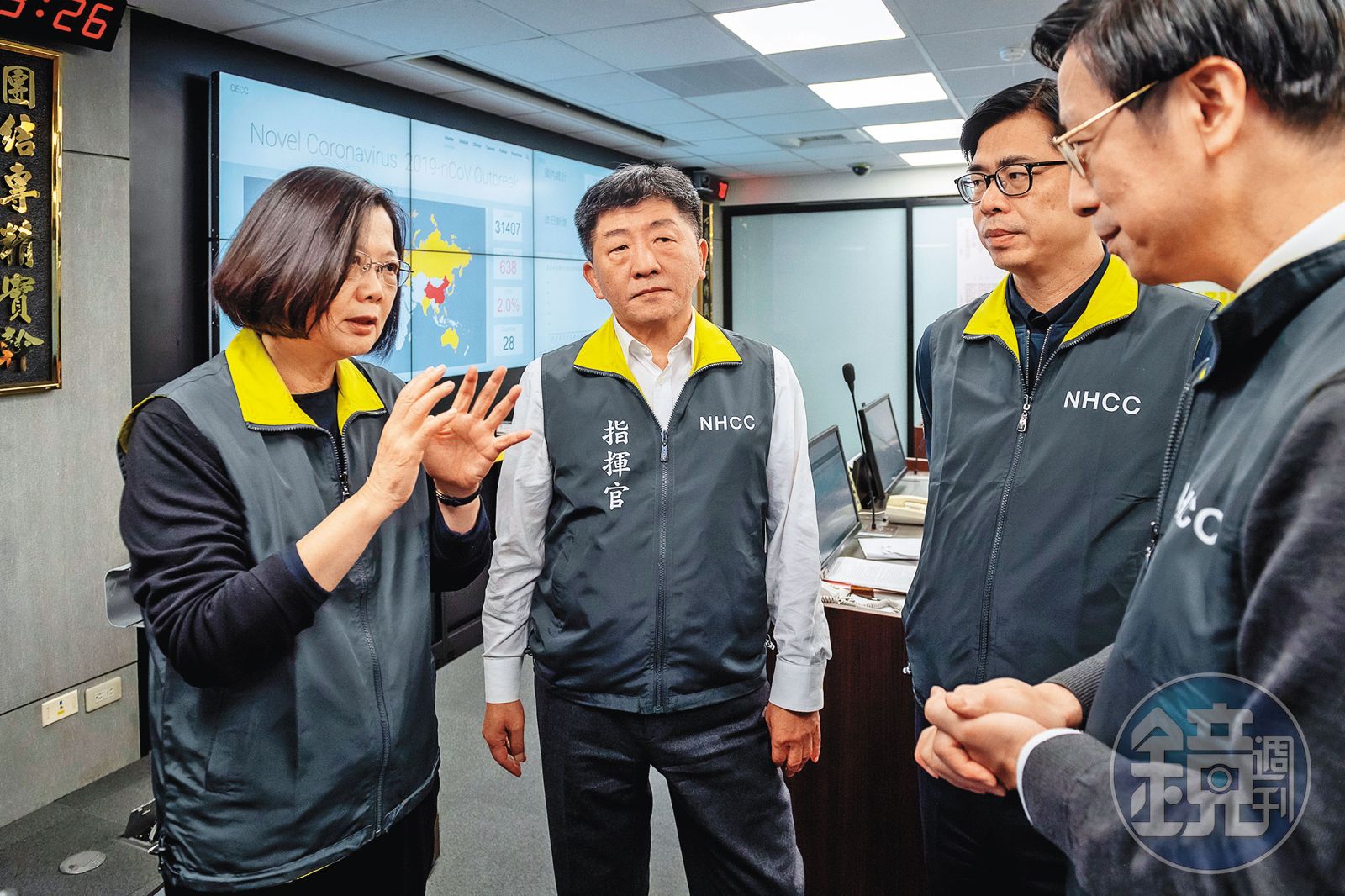 蔡政府特別成立中央流行疫情指揮中心,由衛福部長陳時中擔任指揮官。這位過去鮮少在媒體露面的政務官,突然於媒體上曝光率大增,一般民眾經常可以看到他主持記者會,把最新疫情狀況、政府處理作為、民眾如何正確防疫,秉持專業態度,語氣沉穩地向全民說明。載運200多位國人從武漢返台的包機,他坐鎮緊盯,為了確診病例增加而當場落淚的鏡頭,令人動容;搭乘1,700多位台灣人的郵輪「寶瓶星號」,他親自上船處理,在確定通過檢驗後,迎接他們下船回家。陳時中盡責的表現,對安定社會人心發揮重大作用。