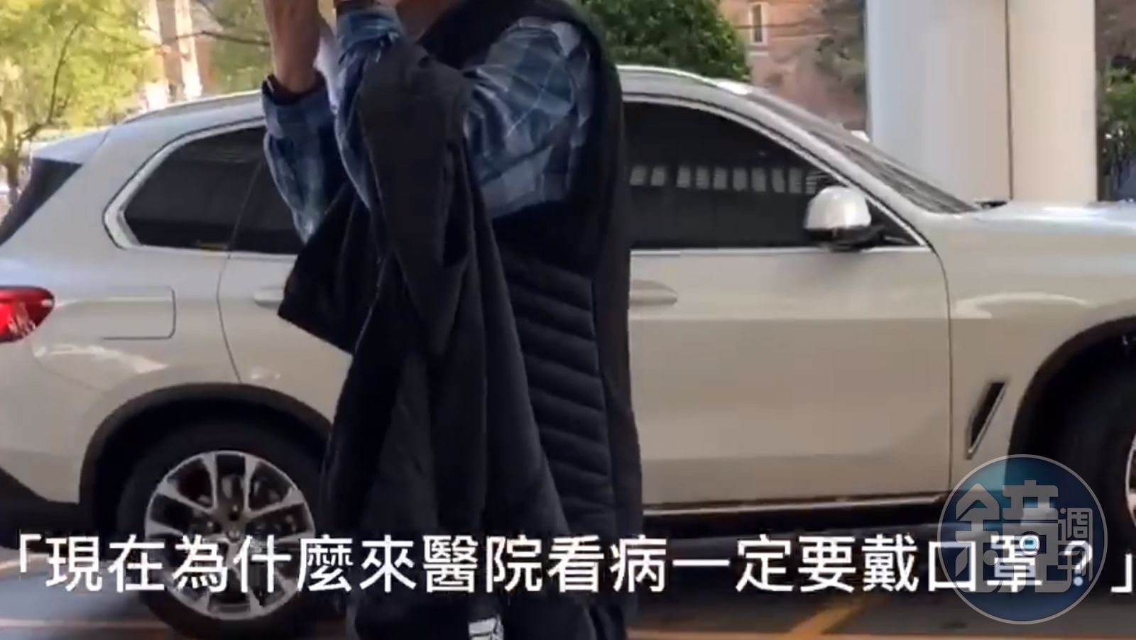 許多民眾看不下去,出聲勸導,還遭到他質疑「關你什麼事!」現場的民眾張小姐用手機拍下了整個過程, 就連醫院工作人員試圖向男子解釋,戴口罩是醫院的規定,男子則是反嗆「哪個醫院,哪裡有規定?」甚至還扯最近出訪美國回來的準副總統賴清德,指他從國外回來,也沒有戴口罩。