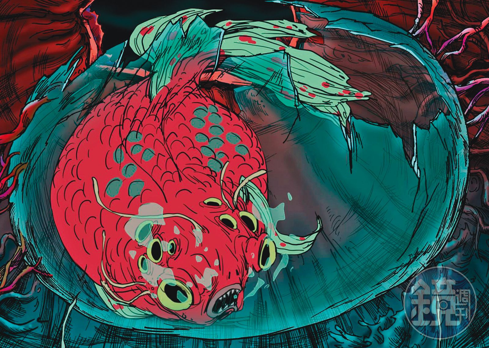 不過,楊雅喆在一週內寫完《金魚》初稿劇本後,因趕拍其編導的電影《血觀音》,未參與第2、第3稿劇本,而《金魚》的劇情也從漫畫裡超現實世界中大人與小孩的世代戰爭,延伸到政治意識與階級對立。