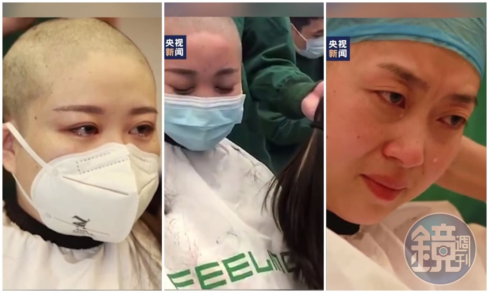 《央視》也在微博貼出影片,寫下「命都豁出去了還要什麼頭髮」「甘肅醫療隊集體剪光頭的隊員中,還有即將結婚的準新娘,你們的髮型是戰疫一線最特別的勳章」。