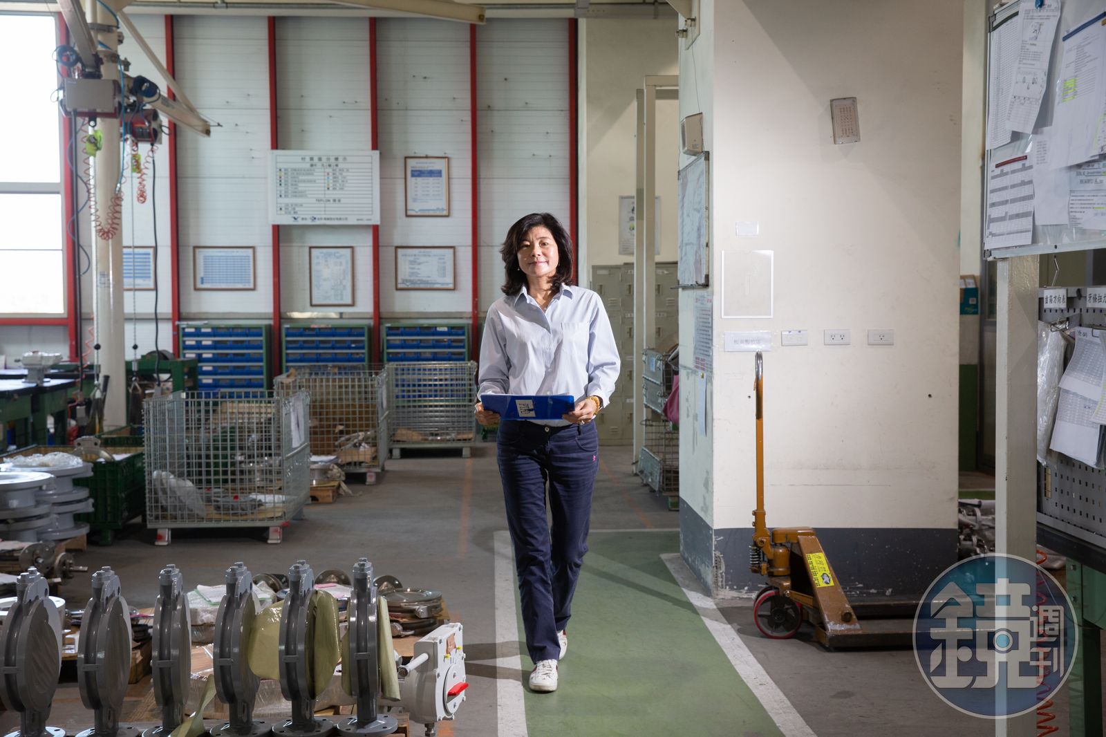 錢佩玲在丈夫牽線下加入捷流,當時只有蝶閥產品,她成立專攻球閥的子公司佳和,讓銷售品項更多元。「球閥和蝶閥最大差異在於中間的啟閉裝置,前者是球體,後者為圓盤型蝶板,客戶不會只用一種閥,我透過貿易買賣外購閥,提供一站式購足概念。」夫妻聯手打天下。