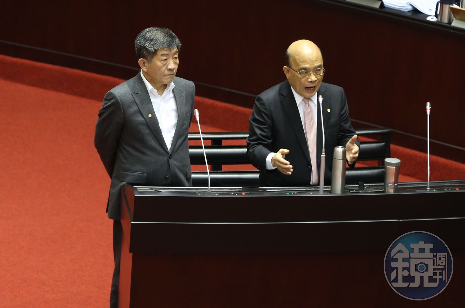 蘇貞昌答詢時表示,過去台灣受威權統治幾十年的不公不義,幸好立法院通過《促轉條例》,促轉會代理主委楊翠帶領團隊也非常辛苦努力,「幾十年的不公不義,不可能2年馬上就完成。」