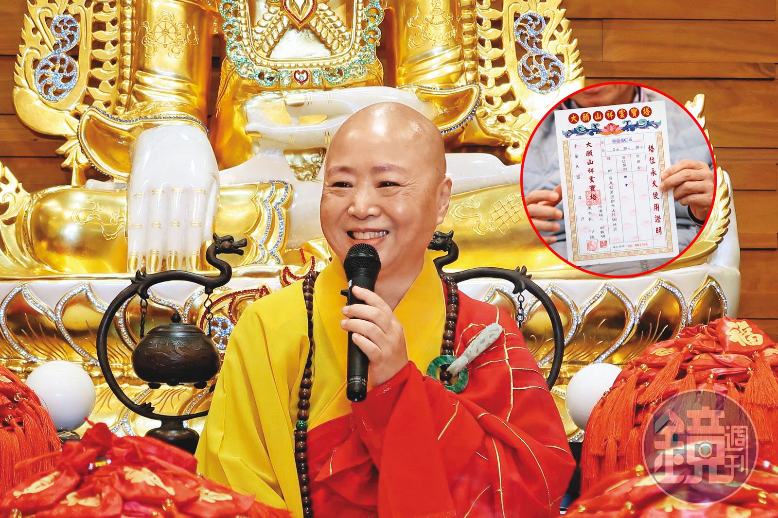王福份經營期間,賣出約五千個塔位,2001年將尚未出售的1萬5000個塔位產權,登記給「埔津公司」董事長陳宗漢,2009年納骨塔的產權才移轉給現在的經營者釋見引法師。釋見引法師接手後,將內部三萬的塔位編號從新塗銷變更,又阻止持有人入內查看,持有人要求與她對話,也不得其門而入。持有人質疑釋見引意圖侵占,再將塔位出售牟利。