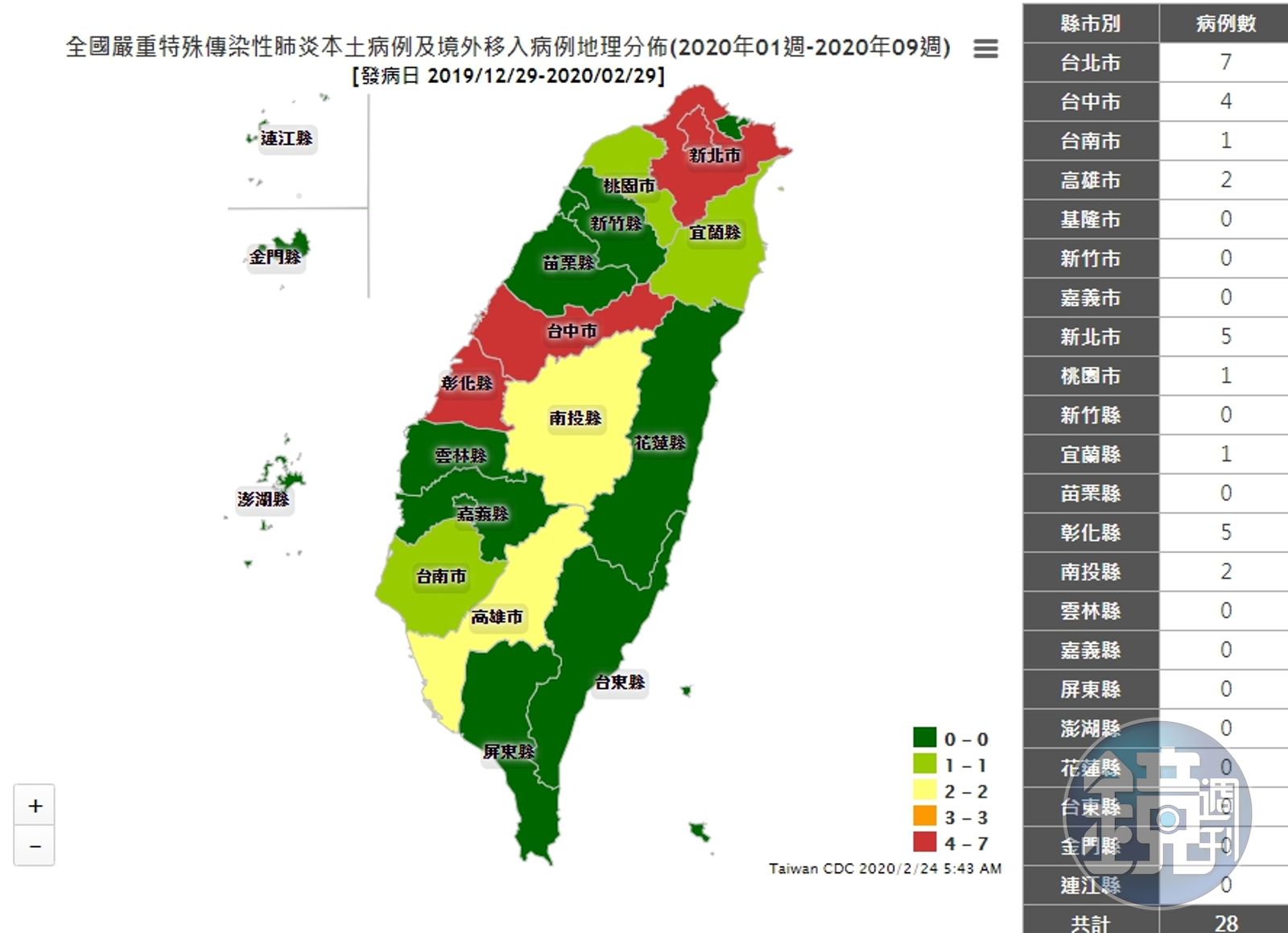 【全民防疫】全台28例確診分布圖開放查詢 第24例在新北市