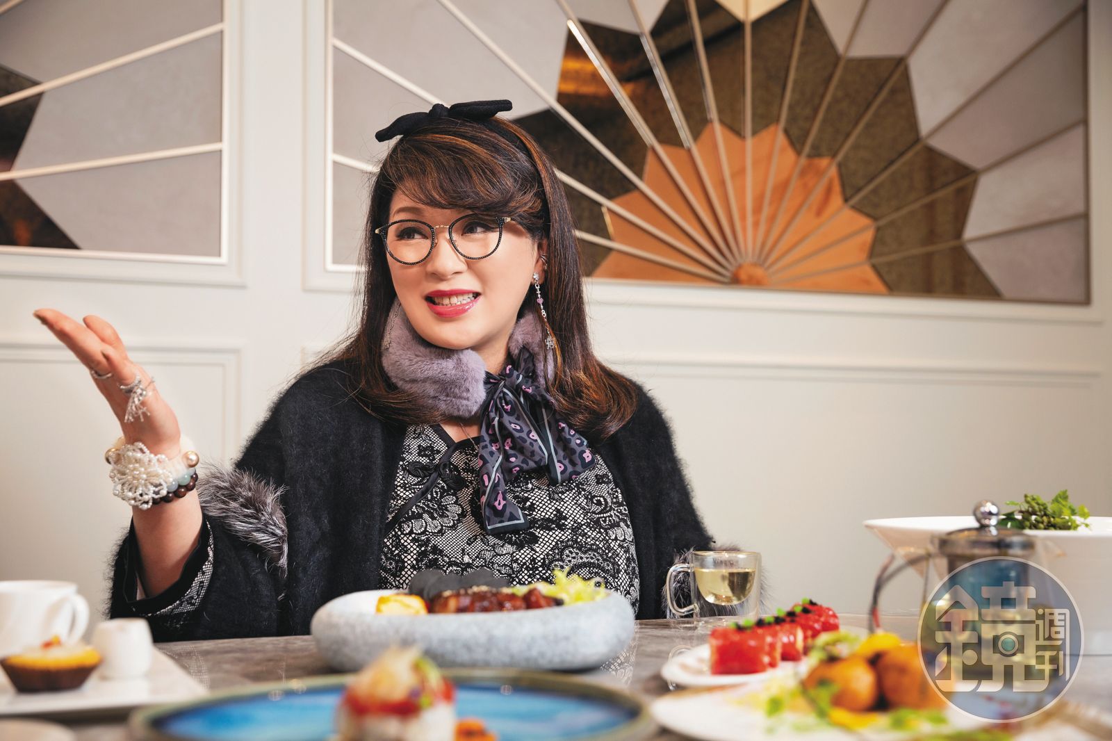 5年前,她先在台北市伊通公園開出「Royal Petite Garden老爺.小花園」咖啡廳,近期再大手筆砸下6,000萬元,開設「玖尹Royal Joying Soirée」中餐廳,砸重金打造媲美5星級飯店餐館的廚房設備、酒吧,還找來米其林一星港點添好運前行政總主廚李一龍,帶領20位廚師組成團隊,並邀請澳門中餐界3大巨頭之一的曾祺輝協助指導,推出「精品級港點」。