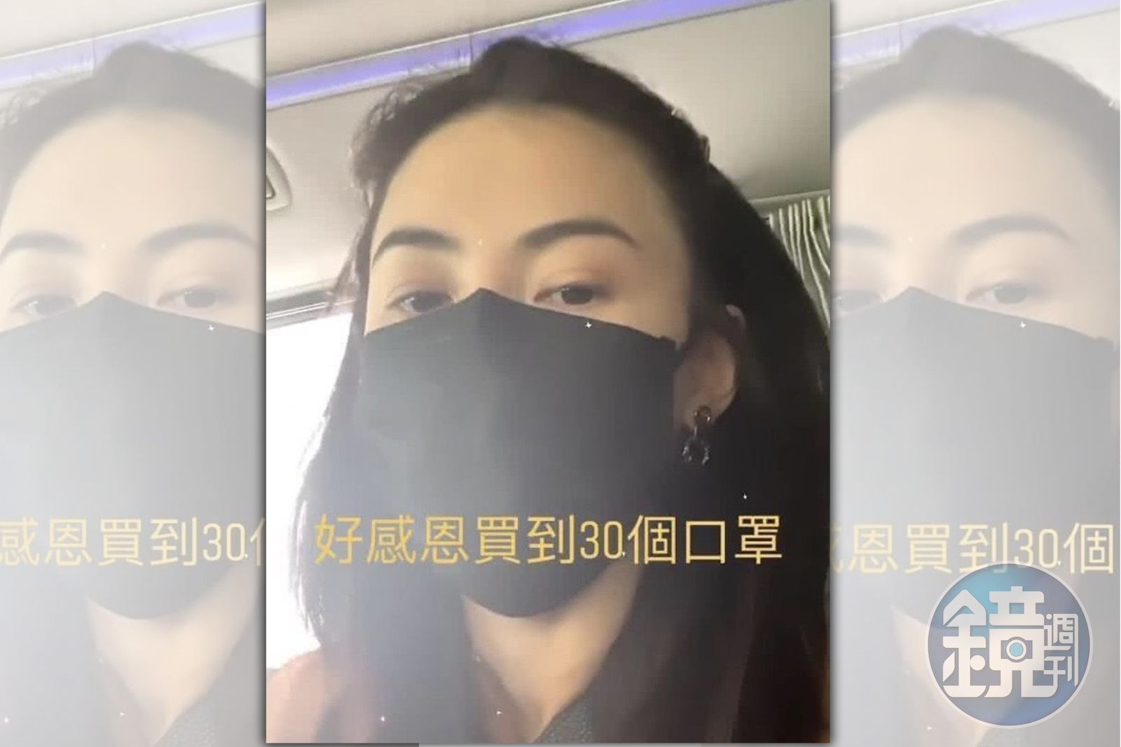 張栢芝一早排隊買入三十個口罩,直喊好感恩。(翻攝自張栢芝IG)發布時間:2020.02.25 15:16 臺北時間