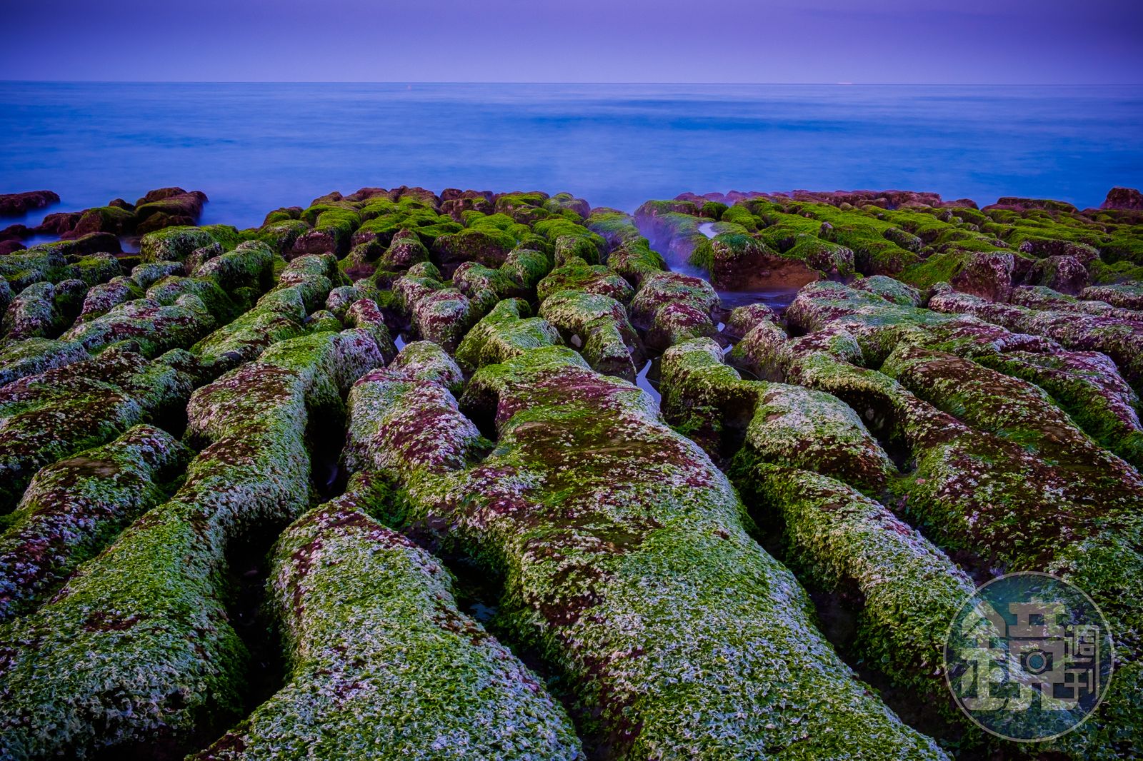 位於北海岸石門的美景,老梅綠石槽,每年春天都呈現一片綠色地毯景象,今年石槽提早綠了許多,翻找以前曾拍過的照片,是已經接近季節尾端,綠苔已經消退了不少,但用慢速快門配上黃昏的夕照顏色也可以呈現一種寧靜美麗的氛圍。最近因為疫情影響大家去國外旅遊的慾望,不妨在國內欣賞這獨特的景緻。