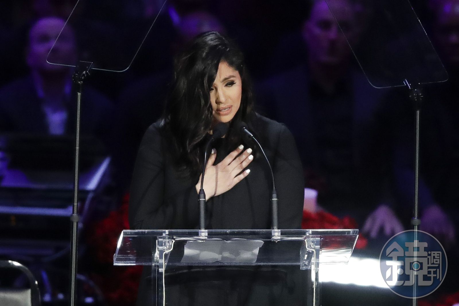 穿著一身黑衣的凡妮莎,自從接到丈夫的噩耗後首次公開出現。她在致詞時說:「我是他的第一個女朋友、他的初戀,也是他的妻子、他最好的朋友和守護者。他是最棒的丈夫,我無法用言語來形容他對我的愛。