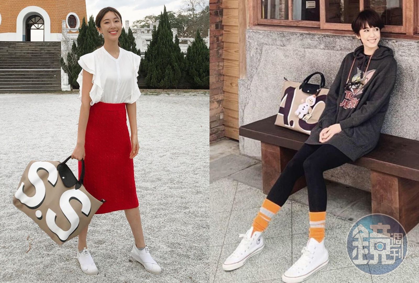 從過年到現在,隋棠、陳庭妮、吳速玲跟錦榮都紛紛背上印有自己名字縮寫的My Pliage Signature,由此也可以見到各明星喜愛的風格與品味,一向優雅的隋棠,選擇了駝色與白色的搭配,而俏皮可愛的陳庭妮,則是以玫瑰粉撞色搭配她的短髮造型。
