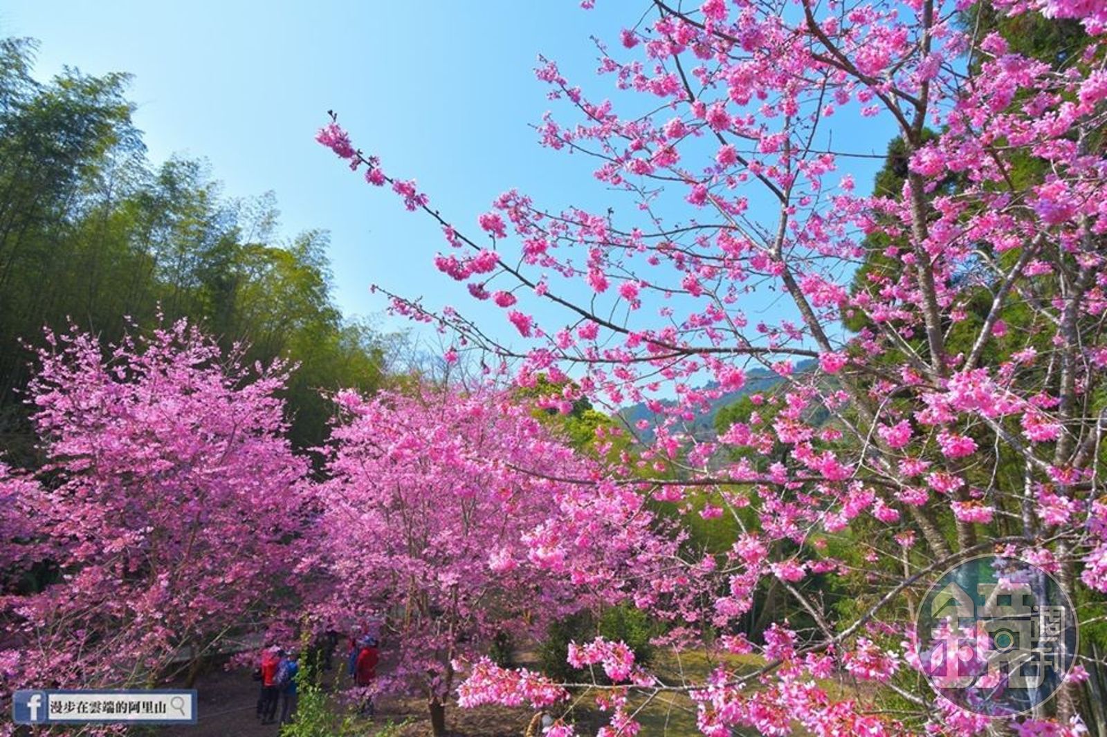 台18線阿里山公路→隙頂(昭和櫻)→巃頭(昭和櫻)→石棹→迷糊步道(椿寒櫻)→中興製茶所(椿寒櫻、昭和櫻)→頂湖(椿寒櫻、昭和櫻)→阿里山公路→頂石棹→長青居(椿寒櫻、昭和櫻)→櫻之道(昭和櫻)→竺園(昭和櫻)→奮起湖→太和油車寮(杏花、緋寒櫻、椿寒櫻、昭和櫻)→149甲縣道→太和橋(椿寒櫻)→來吉(緋寒櫻、椿寒櫻、昭和櫻)→雲嘉隧道→草嶺→石壁→九芎神木(椿寒櫻、緋寒櫻、八重櫻、昭和櫻、杏花)→五元二角→雲嶺之丘。